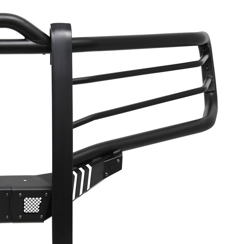 Westins Sportsman X Grille Guard effectively combines aggressive styling with heavy duty front end protection. Engineered to provide both great looks and performance, Sportsman Xs unique design compliments todays larger grille designs, and is available to fit most full and mid size truck applications. Sportsman X has an optional detachable mesh panel (sold separately) which is specifically designed to fit the opening in the center section of Sportsman X Grille Guard, or can be removed to accommodate the flush mounted 26in. dual row LED light bar (sold separately). A smaller removable mesh panel designed for the factory sensor location opening is included as standard with Sportsman X. For specific Chevy and Dodge/RAM applications a Sportsman X Sensor Kit (sold separately) is available. An exterior step plate is located on the 1-5/8in. bottom tube to provide easy access to the engine compartment. Built with heavy duty 2-1/4in. upright rubber strips and 1- 5/8in. outer tubes, Sportsman X Grille Guard is designed to provide protection and style for years to come.