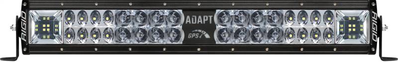 The RIGID Adapt E-Series LED Light Bar features the same style and construction as RIGIDs legendary E-Series, from the high-strength aluminum heat sink to the unbreakable polycarbonate lens. On the inside, however, the Adapt E-Series contains cutting-edge technology. The Adapt E-Series takes off-road lighting performance to a whole new level with two layers of adaptive response to your vehicle and driving conditions. The first layer of adaptive response is RIGIDs new Active Power Management (APM) system which continuously monitors input voltage to determine the status of the vehicles electrical system. If the voltage is stable, the Adapt E-Series will continue to utilize all available power to give you the most output possible. If the available voltage to the light begins to drop due to insufficient power, RIGIDs APM system will gradually reduce the lights power consumption until the vehicles voltage stabilizes. The second layer of adaptive response featured in the Adapt E-Series is RIGIDs proven Active View Technology. This technology uses an internal GPS module to determine the vehicles speed, allowing the Adapt E-Series to properly distribute all available power among three unique optic zones. Utilizing the three zones allows the Active View Technology to create the most optimal beam pattern to suit the vehicles speed. As the vehicles speed changes, power is dynamically routed through various optics. Utilizing scene optics for low speed, driving optics for moderate speed and spot optics for high speed driving. Rather than cycling between pre-set modes, power is transferred gradually between optic zones showcasing the beam transitions. This allows for seamless transition between beam patterns offered in the Adapt E-Series making it easier than ever to Own The Night.
