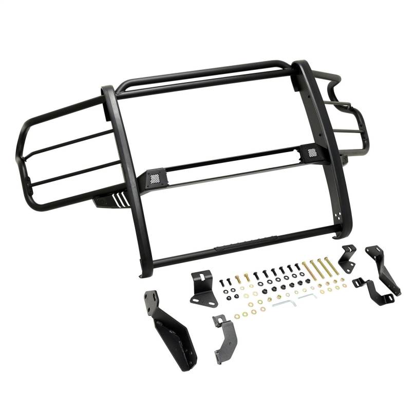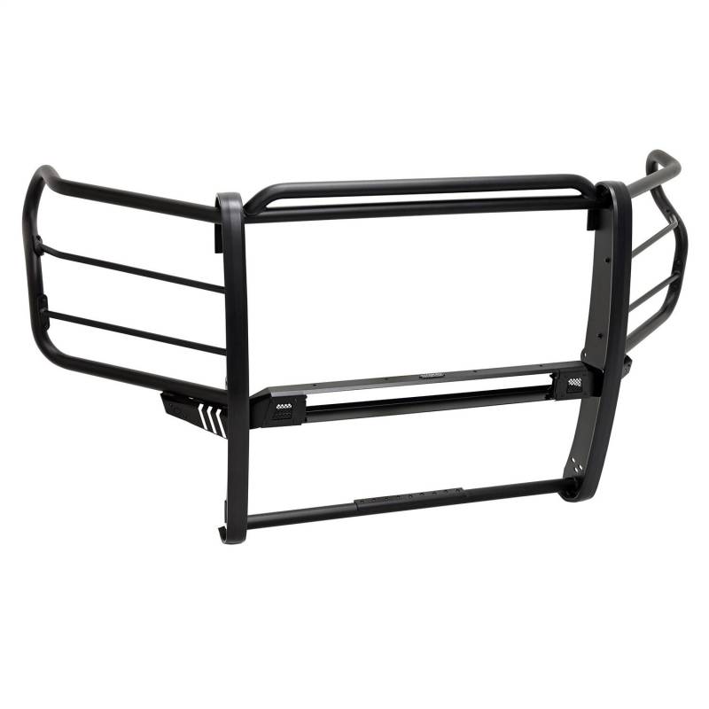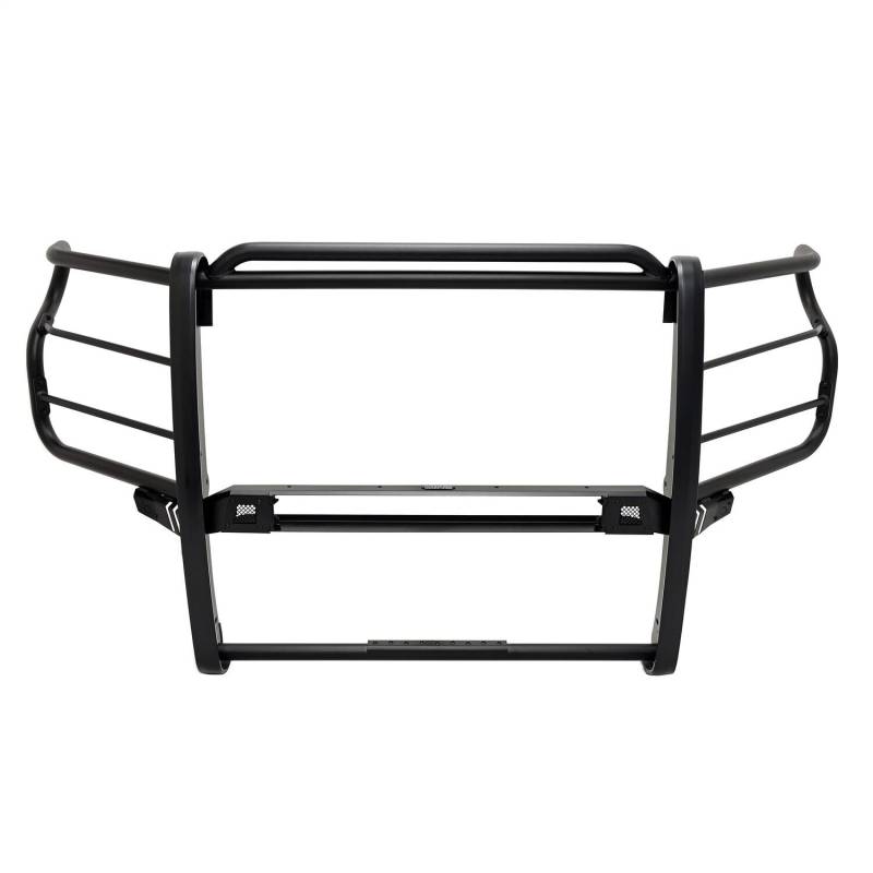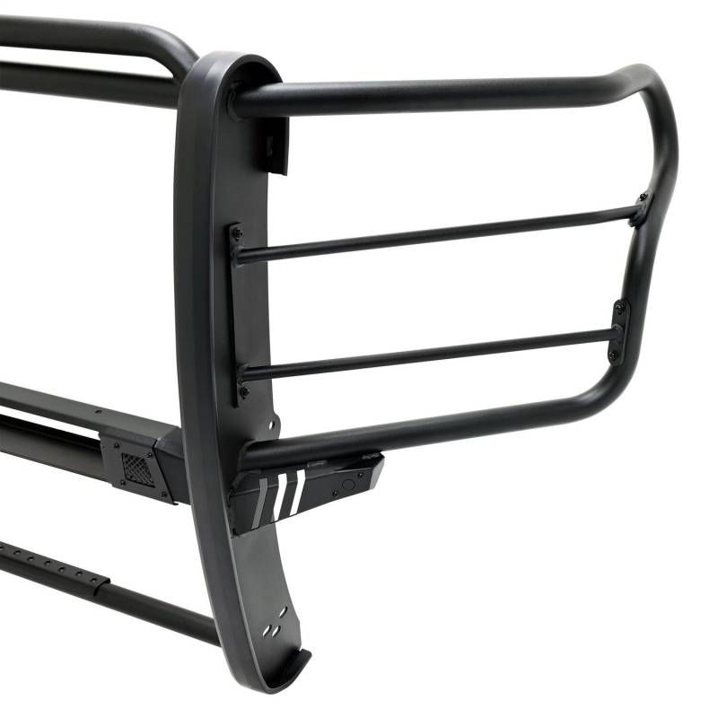 Westin's Sportsman X Grille Guard effectively combines aggressive styling with heavy duty front end protection. Engineered to provide both great looks and performance, Sportsman X's unique design compliments today's larger grille designs, and is available to fit most full and mid size truck applications. Sportsman X has an optional detachable mesh panel (sold separately) which is specifically designed to fit the opening in the center section of Sportsman X Grille Guard, or can be removed to accommodate the flush mounted 26 in. dual row LED light bar (sold separately). A smaller removable mesh panel designed for the factory sensor location opening is included as standard with Sportsman X. For specific Chevy and Dodge/RAM applications a Sportsman X Sensor Kit (sold separately) is available. An exterior step plate is located on the 1-5/8 in. bottom tube to provide easy access to the engine compartment. Built with heavy duty 2-1/4 in. upright rubber strips and 1- 5/8 in. outer tubes, Sportsman X Grille Guard is designed to provide protection and style for years to come.