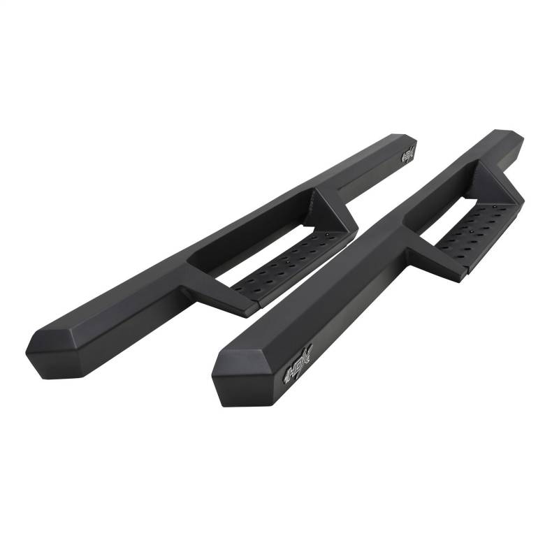 Westins HDX Drop Nerf Step Bars provide the rugged look and function that truck owners need and want. They feature a solid 1-piece steel construction and heavy duty punch plates creating high traction step areas. The HDX Drop Nerf Step Bars also feature Westins notched bar design which provides more than 2in. of additional toe/heel placement versus competitive brands. Available in a textured black finish that complements Westin HDX Bumpers. The HDX Drop Steps have vehicle specific applications and include a vehicle specific mount kit, installation hardware and instructions.