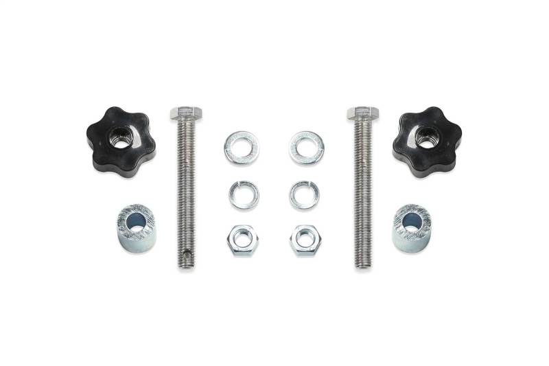 Heavy duty mounting hardware securely fastens a 42 in. tall Hi-Lift jack to the back side of the Fabtech Cargo Rack for the Jeep Gladiator. Large clamping knobs allow for a quick on and off feature. The mount allows for the installation of a small padlock (not included). Mount only. Hi-Lift jack not included.