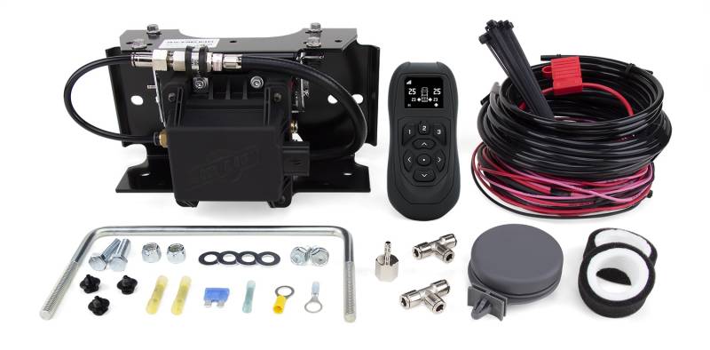 WirelessAIR Leveling Compressor Control System - 2nd Generation - Incl Compressor/Manifold/Control Box - Black Powder Coated Steel Mounting Plate