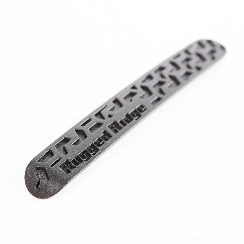 Bring a tasteful off-road accent to your JKU with Rugged Ridge Elite Door Handle Inserts featuring a cool tread-inspired inlay. Each insert is made from lightweight cast aluminum and treated to a fine textured powder coat for durability and outstanding good looks. Kit Includes 5 inserts for all doors and rear tailgate. These inserts install with ease with double-sided automotive tape. No sharp edges result in a comfort-fitting install.