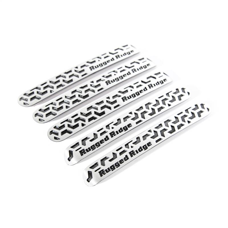 Bring a tasteful off-road accent to your JK with Rugged Ridge Elite Door Handle Inserts featuring a cool tread-inspired inlay. Each insert is made from lightweight cast aluminum with a lustrous brushed finish and black recesses giving an eye-catching custom touch to your rig. Kit Includes 3 inserts, for both doors and rear tailgate. These inserts install with ease with double-sided automotive tape. No sharp edges result in a comfort-fitting install.