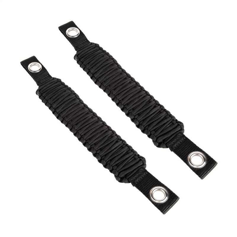 We took the convenience and utility of our classic grab handle and added the trendy tactical styling of nylon parachute cord to create a cool new take on the original- the Rugged Ridge Paracord Grab Handle. Available in two versions, Windshield A-Pillar Grab Handles attach directly to the interior a-pillars (can also be used above the rear doors on JKU models) while Rear Seat Grab Handles attach to the headrest posts of your JK's front seats. Paracord Grab Handles come in pairs and are available in a sleek black color that looks great with any color interior.