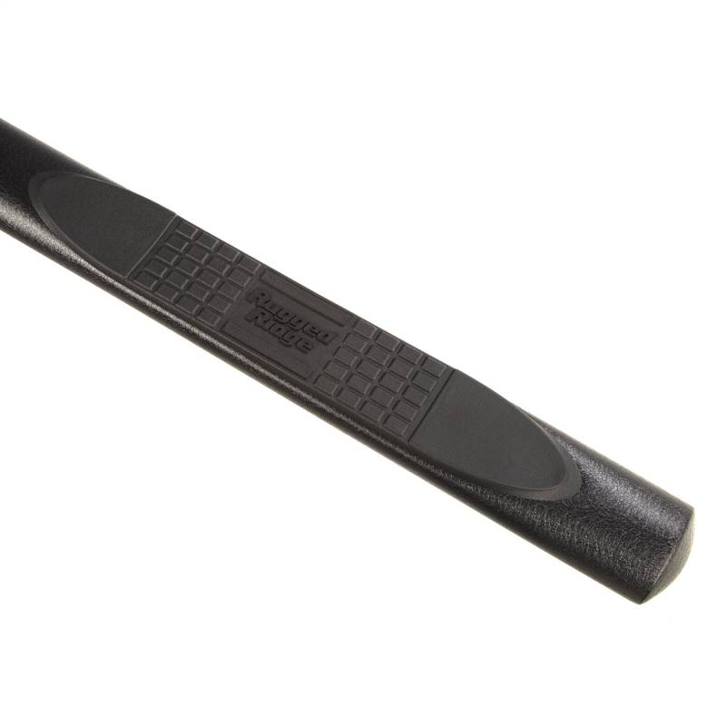 These 4- in. oval side steps offer an even more muscular appearance that's perfect for lifted Jeeps and oversized tires. Rugged Ridge steps feature .07- in. thick wall steel tube that is E-coated and treated to a beautiful textured black powder coat finish for superior rust-resistance. All Rugged Ridge Tube steps are designed specifically for your model Jeep giving a truly custom fit. The included high-strength installation brackets are constructed of durable powder coated steel for long life and years of flex-free use. Each Tube Step includes UV-treated step pad inserts at every door, providing traction in any weather and easing vehicle entry and exit. Rugged Ridge Round Side Steps carry an impressive 300 lb. max weight limit. All installation hardware and easy-to-follow instructions are included.