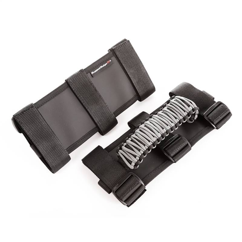 Rugged Ridge Paracord Grab Handles are constructed of durable 550 nylon parachute cord that is woven into a brawny 'Double Cobra' style knot that feels substantial in your grasp. Each handle secures to two OR three- in. diameter roll bars and install easily with heavy duty hook and loop straps for a firm and stable fitment. Your Jeep will love the attractive tactical styling, not to mention how much you'll love the assistance getting in and out of your rig! Paracord Grab Handles are available in a variety of color combinations, with one to suit any taste: Black on Black, Red on Black or Gray on Black. Sold in pairs.
