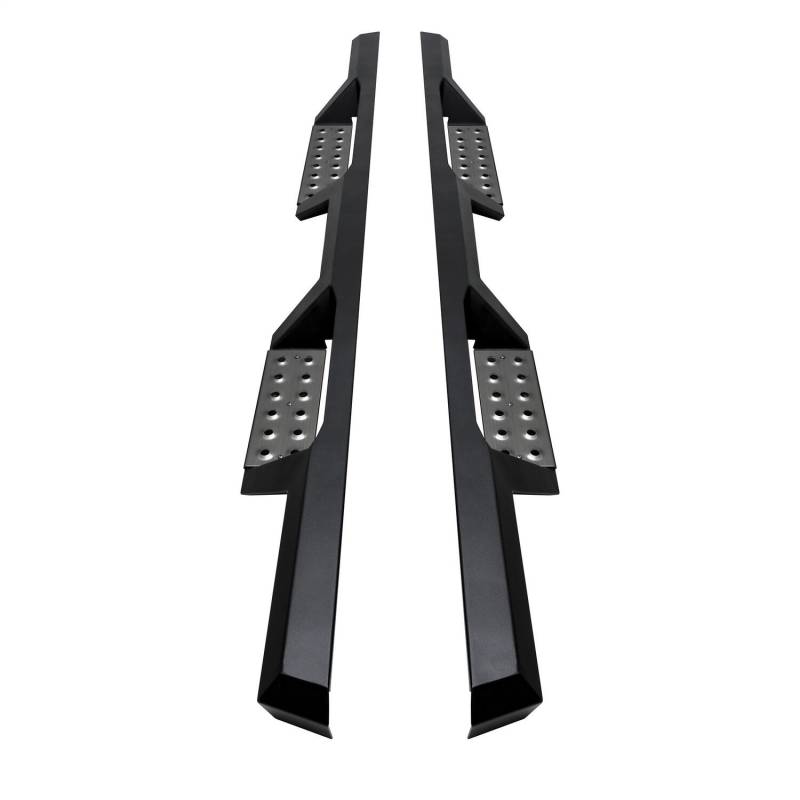 Westin's HDX Stainless Drop Nerf Step Bars are built with corrosion-resistant, textured black painted stainless steel designed to last under the toughest of conditions. With 1-piece construction, these nerf step bars provide over 2 added inches of toe/heel step area than our competitors and fit tight to the vehicle's rocker panel for a solid fit and rugged look. HDX Stainless Drop Nerf Step Bars include stainless steel step pads. Step plates are rust resistant and provide maximum traction. Bolt-on installation with no drilling is required. Includes mount kit.