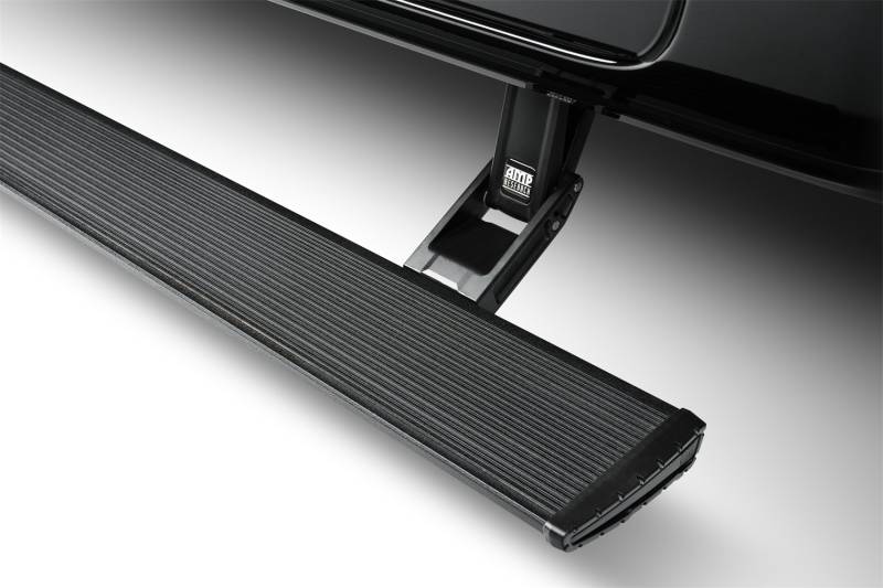 The AMP Research Power Step is built to perform in severe driving conditions and is backed by a 5-year/60,0000 mile warranty.OPEN DOOR. STEP ON BOARD. AMP Research Power Step automatically deploys for easy stepping in and out of your high-riding truck. When doors close, this power-operated running board retracts safely out of sight with no loss of ground clearance.