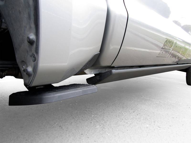 The AMP Research Power Step is built to perform in severe driving conditions and is backed by a 5-year/60,0000 mile warranty.OPEN DOOR. STEP ON BOARD. AMP Research Power Step automatically deploys for easy stepping in and out of your high-riding truck. When doors close, this power-operated running board retracts safely out of sight with no loss of ground clearance.
