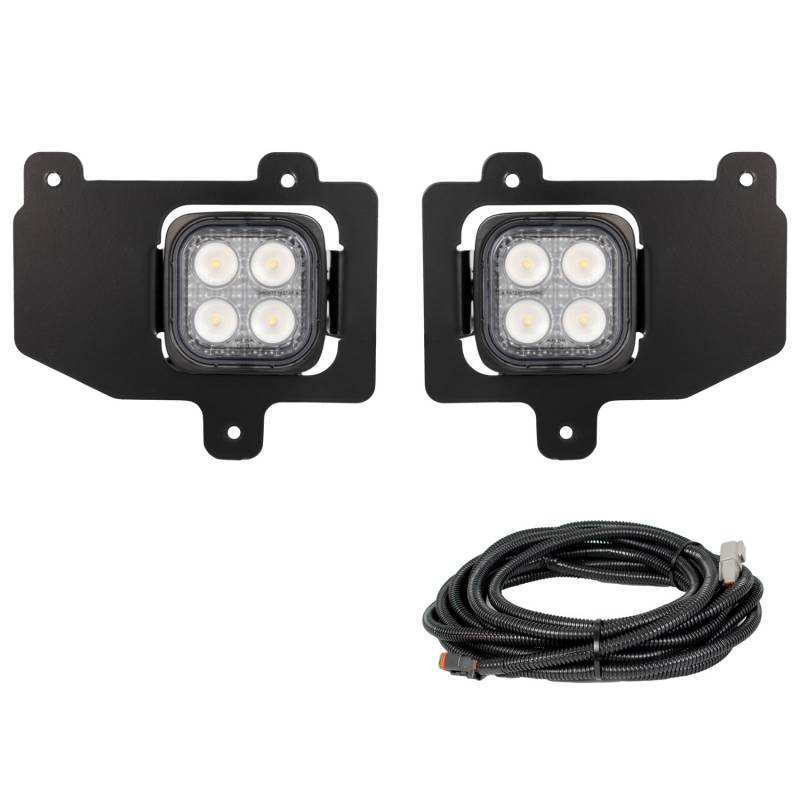 The no-drill, heavy duty brackets ensure a clean fitment while maintaining a factory like appearance. This kit comes complete with (2) Dura Mini Flood lights, (2) Mounting Brackets, Mounting Hardware, Wiring Harness, and extension harness.