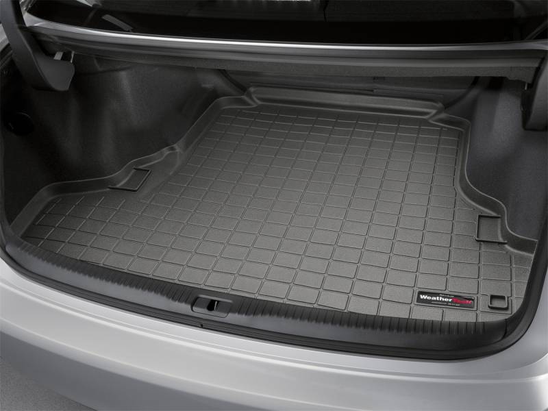 WeatherTech Cargo Liners provide complete trunk - cargo area protection. Our cargo liners are computer designed to fit your vehicle and have a raised lip to keep spills, dirt and grease off your vehicles interior, protecting your carpeting from normal wear and tear. Made from a proprietary custom blended TPO (thermopolyolefin) that is not only wear resistant, but also remains flexible under temperature extremes. The WeatherTech Cargo Liner features a textured finish which helps to keep cargo from shifting, and is perfect for hauling just about anything. Available in three colors, Black, Tan or Grey. Available for car trunks, SUVs and minivans. WeatherTech Bumper Protector is a great addition to your Cargo Liner to help protect the surface of your vehicle's bumper from dings and scratches when loading or unloading personal items or pets. The Bumper Protector is made from highly durable vinyl fabric that easily snaps onto your Cargo Liner by stainless, rust resistant snaps. The WeatherTech Bumper Protector comes in two sizes: 30 in. long x 30 in. wide and 30 in. long x 40 in. wide. Bumper Protectors are vehicle specific so the correct size option will be shown for your vehicle.