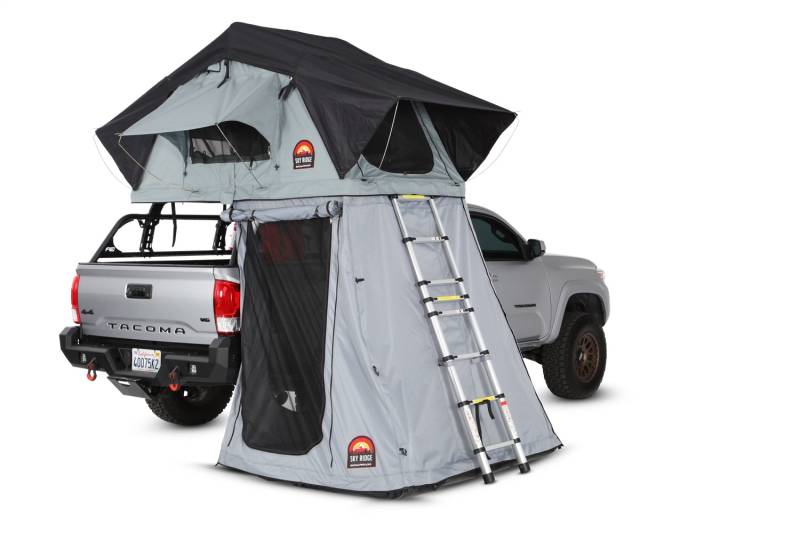 Quickly and easily turn your Pike Roof-Top Tent into a two-story backcountry condo with the Pike Annex Room. The Annex easily attaches to the Pike tent's extended floor to enclose the area below the tent and next to the vehicle. This provides extra space for cooking, storing camping gear, changing clothes, or a sitting area. The Annex encloses the roof-top tent's ladder and entry, providing a buffer room between your sleeping quarters and the outdoors, making it a perfect place to lace up your hiking boots and prepare for a day of adventure.