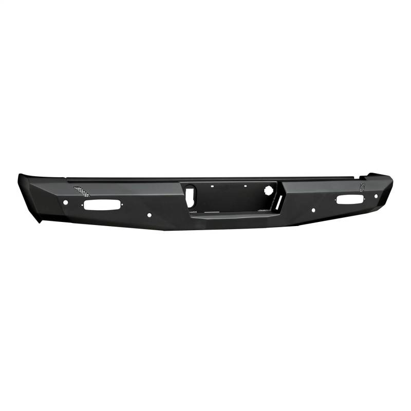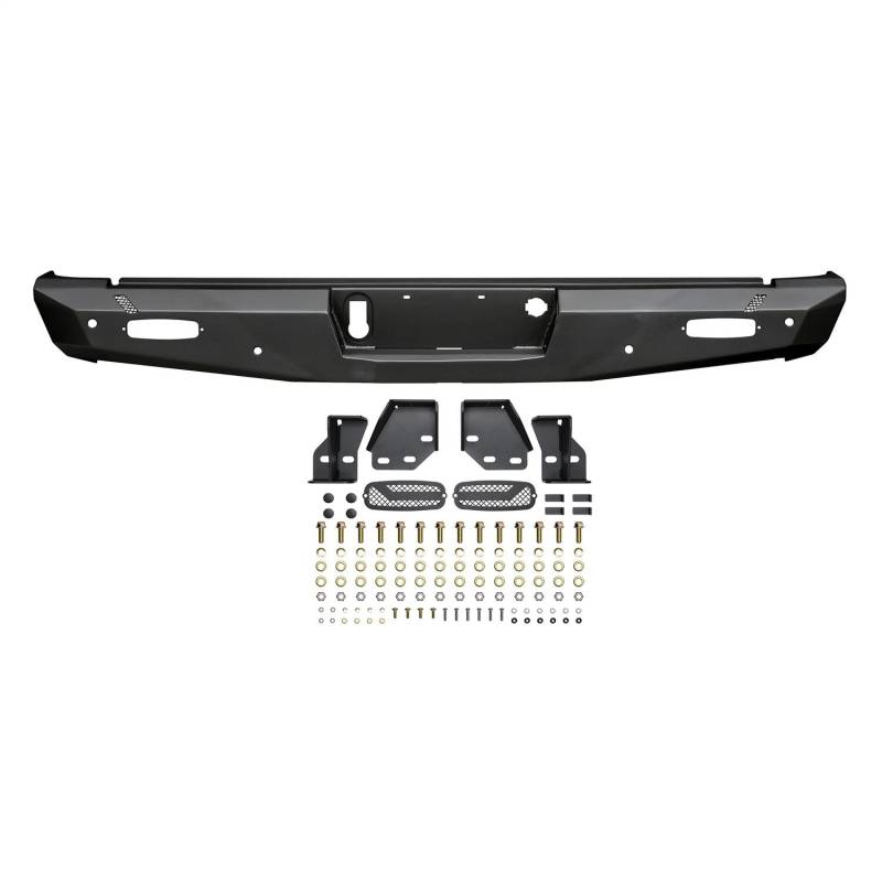 High and Tight best describes the great looking new Pro-Series Rear Bumpers from Westin. This all new "off road style" rear bumper features a light weight, slim, one-piece design, adding a modern, aggressive look to your truck. Built to improve ground clearance and departure angles when driving in more rugged terrain. The Pro-Series Rear Bumper is fully compatible for OEM parking sensors, hitch, and blind spot monitors. It also includes two LED license plate lights and can accommodate LED back up lights (sold separately). Featuring a textured black finish with an e-coated base coat, providing long lasting corrosion protection from the elements with easy bolt-on installation. Just add the original Pro-Mod Front Bumper, and your transformation from stock to custom is complete.