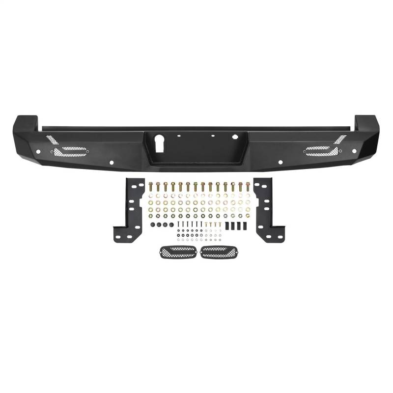 High and Tight best describes the great looking new Pro-Series Rear Bumpers from Westin. This all new "off road style" rear bumper features a light weight, slim, one-piece design, adding a modern, aggressive look to your truck. Built to improve ground clearance and departure angles when driving in more rugged terrain. The Pro-Series Rear Bumper is fully compatible for OEM parking sensors, hitch, and blind spot monitors. It also includes two LED license plate lights and can accommodate LED back up lights (sold separately). Featuring a textured black finish with an e-coated base coat, providing long lasting corrosion protection from the elements with easy bolt-on installation. Just add the original Pro-Mod Front Bumper, and your transformation from stock to custom is complete.