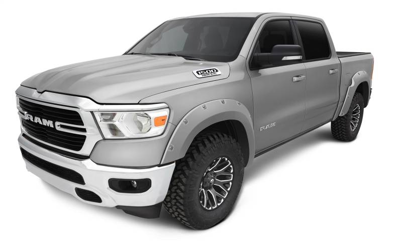 Bushwacker's rugged, iconic Pocket Style Fender Flares allow for more tire coverage and more clearance for trucks and SUVs while protecting the vehicle from dirt and debris. These flares are now available pre-finished to match the paint on your new Ram, plus they have the edge trim and stainless steel hardware pre-installed for quick and easy installation and a perfect fit . Made from sturdy Dura-Flex 2000 material, these flares are warp-resistant and tailor made for each application. Despite their bolted-on appearance, these flares install easily with minimal drilling for a secure fit. And since they're ready to install out of the box, there's no waiting on paint, and no hassle with installation.
