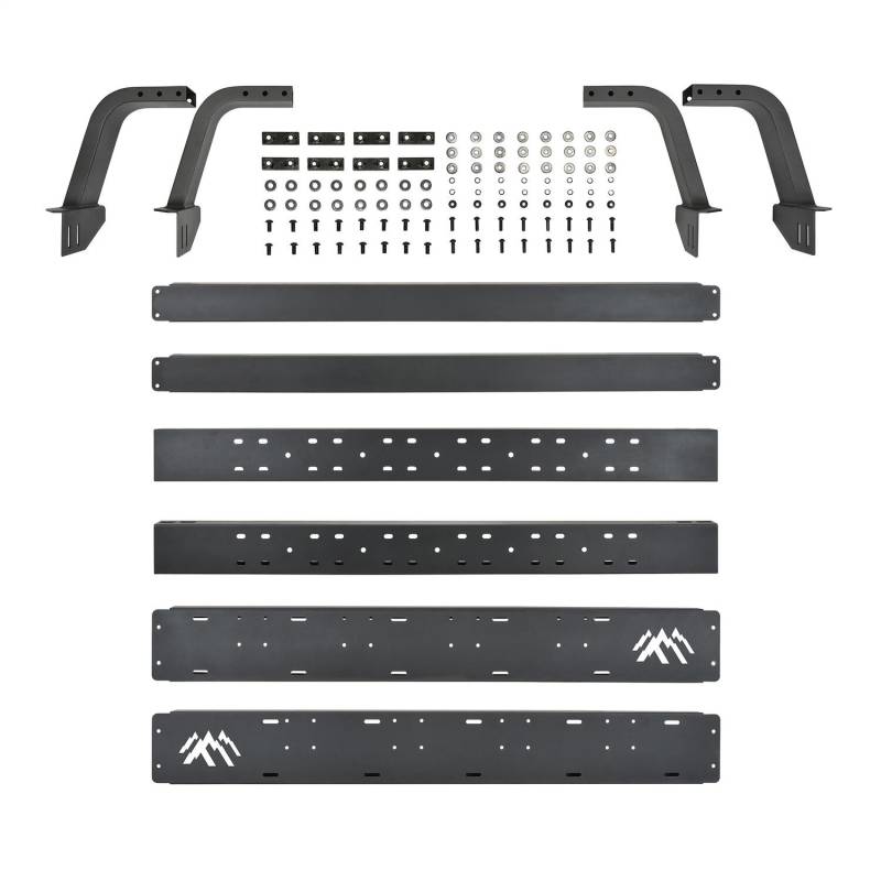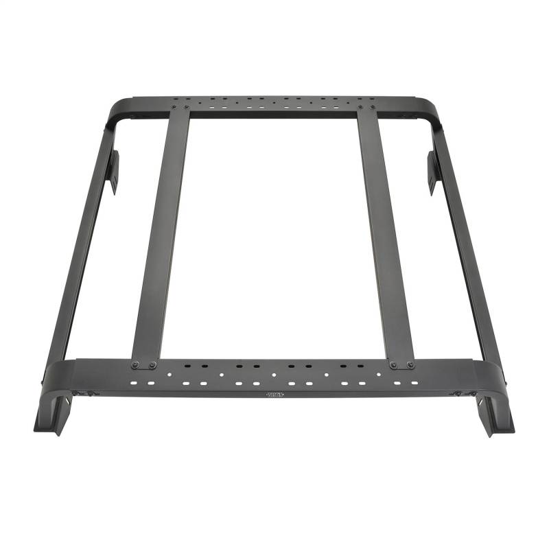 Maximize the cargo space and storage capacity of your truck with an all new Overland Cargo Rack from Westin. This multi-purpose bed rack "cargo management system" allows for a wide variety of off-road and overland gear storage, such as off-road jacks, RotoPaxTM gas cans , traction boards, shovels, rooftop tents, LED lighting and storage boxes, with multiple mounting positions and options. Constructed of 4in. rectangular tubing and 14 gauge steel, this unique design utilizes the OEM bed rails for a no-drill mounting which is incredibly strong, but lightweight and easy to install. The low profile design was engineered to keep the cargo gear below the cab roofline, positioning most roof top tents to be flush with the top of the cab roof to reduce wind resistance and allow for easier garage parking. You can choose your preferred rack length (available in either 45in. or 57in. options), and top support rails which can be mounted in multiple positions as needed. It can also accommodate a wide variety of roof top tent footprints, making the Overland Cargo Rack perfect for any back country adventure.