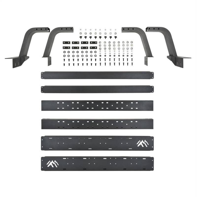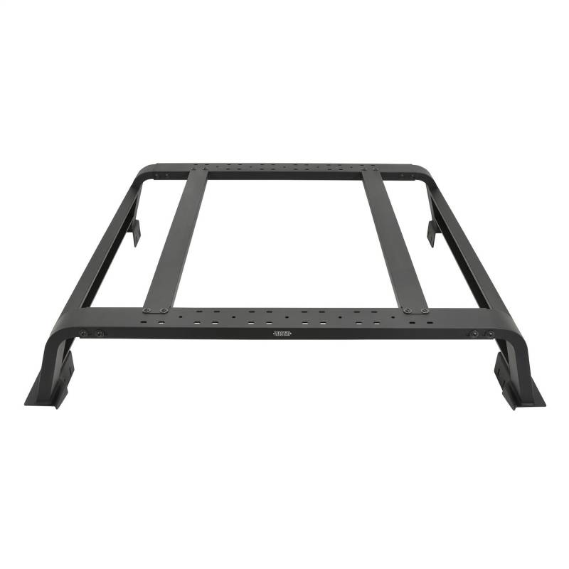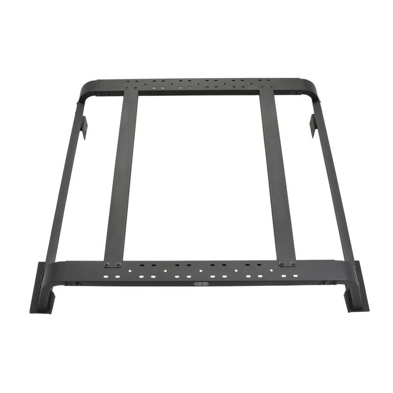 Maximize the cargo space and storage capacity of your truck with an all new Overland Cargo Rack from Westin. This multi-purpose bed rack "cargo management system" allows for a wide variety of off-road and overland gear storage, such as off-road jacks, RotoPaxTM gas cans , traction boards, shovels, rooftop tents, LED lighting and storage boxes, with multiple mounting positions and options. Constructed of 4in. rectangular tubing and 14 gauge steel, this unique design utilizes the OEM bed rails for a no-drill mounting which is incredibly strong, but lightweight and easy to install. The low profile design was engineered to keep the cargo gear below the cab roofline, positioning most roof top tents to be flush with the top of the cab roof to reduce wind resistance and allow for easier garage parking. You can choose your preferred rack length (available in either 45in. or 57in. options), and top support rails which can be mounted in multiple positions as needed. It can also accommodate a wide variety of roof top tent footprints, making the Overland Cargo Rack perfect for any back country adventure.