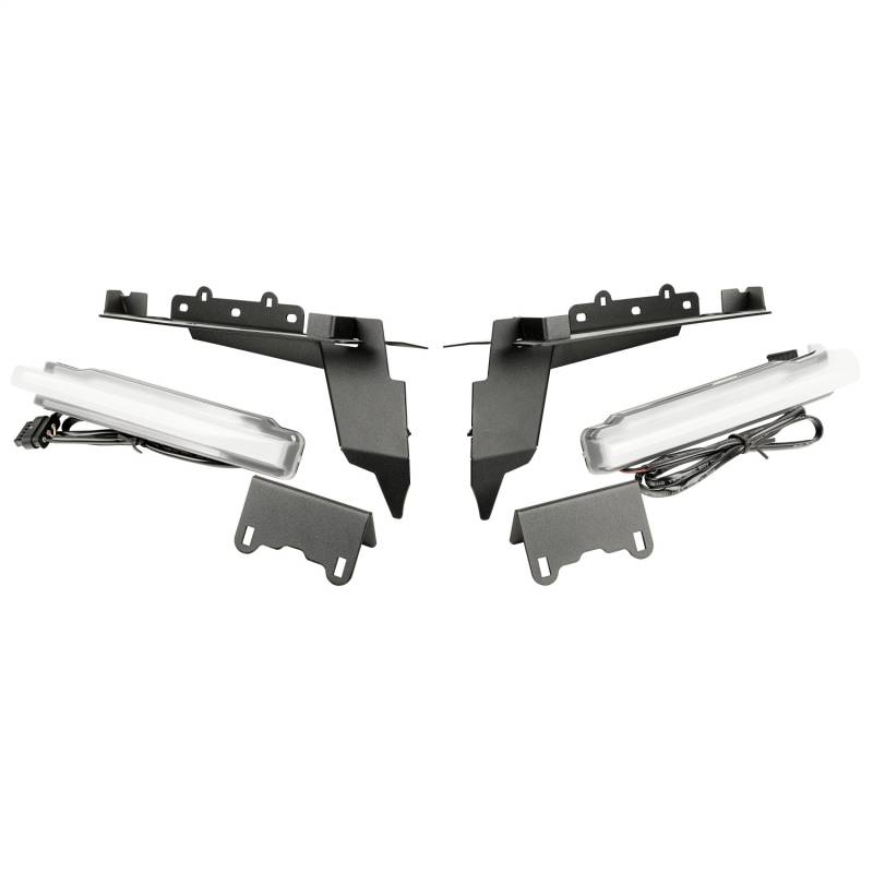 Modifying JL flares for off-road is easy and the look is nothing short of heroic with the Rugged Ridge Fender Chop Brackets. By removing the bulky factory fender light assembly, you'll have greater clearance for oversized tires with nothing to get between you and that next obstacle. Sturdy steel chop brackets install easily and lend support for the front of the factory fender flare, adding a fearlessly aggressive new look. And since Jeeps don't live solely off-road, radical dual-output DRL tubes provide a cool white running light by day that turns a vivid amber with your vehicles turn signals. Chop Brackets come in pairs, for Rubicon models, and feature a matte black powder coat finish that blends seamlessly with the factory flare finish. All installation hardware and instructions are included for a hassle-free install in record time.
