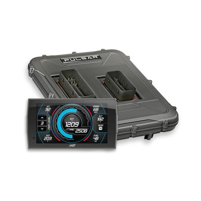 The Pulsar is the most innovative performance in-line tuner to ever hit the market. The Pulsar in-line module has made waves among truck owners. Now kit that with the industry-leading Insight CTS3 monitor for advanced features and safety back downs. The Insight allows you to adjust the power levels any time with or without the cruise control on, set user adjusted back downs for safety, set a turbo timer for the proper cool-down period, and more. The L5P Pulsar plus Insight Kit gives superior performance with complete control. The Pulsar for the 2017-2019 GM 6.6L Duramax is the clear-cut winner for the L5P tuning market. Stop dealing with wires, expensive ECU swaps, fuel pressure boxes, and other lackluster products. The best performance tuner to ever hit the market is leading the way for ease of install, performance gains, and the only product available that uses steering wheel controls to change power levels while driving, Shift-On-The-Fly. Using live data to change and adapt the Pulsar adjust signals making it the best-in-class winner with features and POWER! The Pulsar inline module has made waves among truck owners. The industry-exclusive technology, now available via Pulsar, has totally changed the game when it comes to adding performance and keeping the ECU on the truck. No mail-in unlocks, no cross-shipment, or hassle. Pulsar supplies instant power, on the fly, with no flash tuning. The Pulsar is an in-line computer that connects directly to the vehicle PCM, with no additional wiring harness. By connecting directly to the trucks PCM, Edge has the ability to control the vehicle to optimize performance gains, throttle response, mileage, tire size, speed limiter, fueling, high-idle, and more. To make things even better, the Pulsar offers 5 performance levels that can be switched on-the-fly by using the vehicle cruise control + and buttons on the steering wheel. The active power level (0-5) will be displayed using the speedometer gauge.