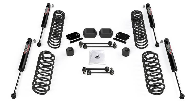 The ultra-simple TeraFlex 2.5 Inch Coil Spring Base Lift Kit comes with the basic parts needed to fit larger tires for increased ground clearance for better off-road capability without compromising on road handling.