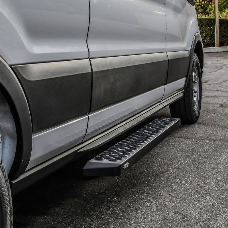 Westin's Grate Steps Running Boards are engineered to provide maximum traction without sacrificing style. The 6 1/4 in. step surface width features an aggressive 1/4 in. high punched tread, allowing traction in any weather condition. The unique serrated edges help clean dirt, snow, and mud off your boots to keep truck cab clean. Grate Steps Running Boards feature stylishly formed and fully welded ends with a custom die-cast riveted logo badge. E-coated base coat provides long lasting corrosion protection, which far surpasses that of the competition. Solid 1-piece construction makes Grate Steps Running Boards ideal for construction and commercial use. Available in universal lengths (54 in., 68 in., 75 in., 79 in., 83 in., 86 in. and 90 in.), with vehicle-specific mount kit required (sold separately). Available in textured black powder coat finish.