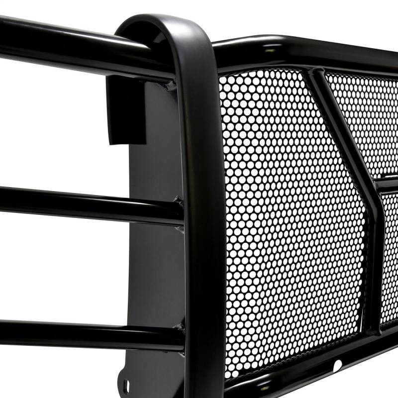 The HDX Grille Guard is the ultimate in extreme truck gear. It's a fully welded 1-piece grille guard that features full wraparound wings made of heavy duty 2 in. diameter tube. Uprights are finished and protected with extra wide rubber strip that is 1/8 in. thick and 2 3/4 in. wide resulting in a solid clean look. The full punch plate grille protects the vehicle's grille area. HDX Grille Guards are available in stainless and black powder coat finish.