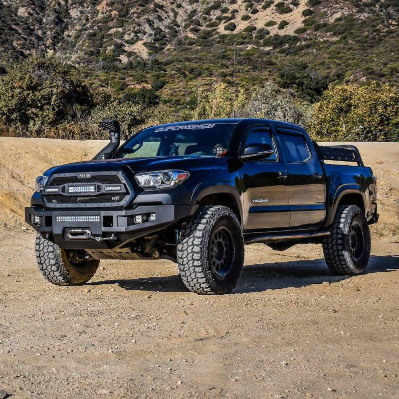 The Pro-Series Front Bumper from Westin is an attractive, heavy duty, "winch capable" upgrade which retains the OE factory features while upgrading both looks and functionality. Built for adventure, this bumper is ready for anything standing in its way. The Pro-Series was engineered to improve both approach angles and ground clearance for enhanced off-road capabilities. Constructed with a 10 gauge steel bumper shell the Pro-Series is designed for maximum strength and durability. Utilizing a heavy duty 1/4in. steel center section capable of accomodating most any 12k lb. winch, and added welded mounting points for recovery, this bumper takes you off the highway with confidence. Engineered to fit most double-row 20in. LED light bars (sold separately) for added safety on those late night excursions. Finished with a durable E-coat and black textured 2-stage treatment and backed by a full 3-year warranty Westin has you covered. Includes all the necessary mounting hardware for a "hassle free installation". Pro-Series is available for Ford, Chevy, Ram and Toyota applications. Add the matching Pro-Series Rear bumper to complete the look and take your truck to the next level.