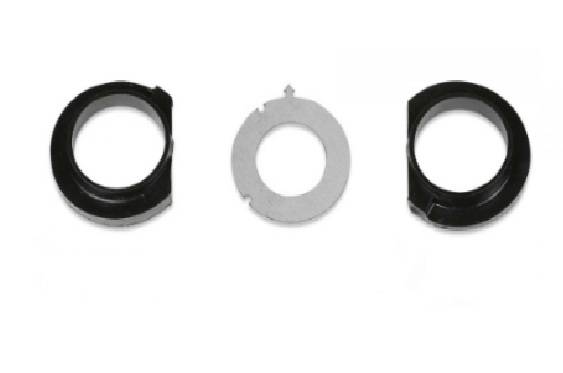 This Coil Correction kit is offered as an option to help straighten the front coil springs should there be coil interference with other suspension parts as it cycles. This kit addresses both the upper angle and lower angle of the coil spring seats to help straighten the spring.