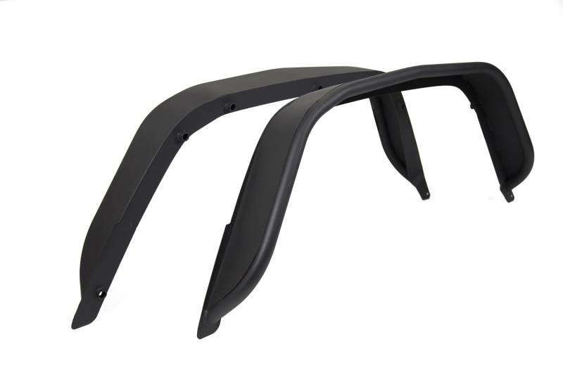 Taking your Jeep off-road is truly one of life's simple pleasures. While others might take pride in a sparkling clean car, you wear that coat of mud-n-muck like a badge of honor. Rugged Ridge Tube Fenders were engineered for those die-hard few that love leaving the pavement behind but despise the cringe-worthy sound of tire meeting flare. Outfit your rig to increase your tire clearance, reduce those horrible churning noises and find a whole new unpolished persona. You'll find yourself wheeling with a whole new level of confidence. Available with a rugged matte black finish in pairs for Front, Rear and Full Sets. (If retained, some drilling and trimming of factory fender liner required)