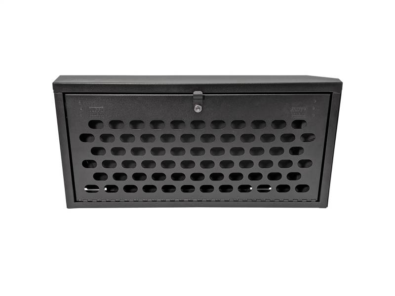 This heavy duty, high security lock box mounts on the inside of the Jeep Wrangler JK tailgate providing ample secure storage for tools and other gear. The door folds down creating a work table for cooking or quick sorting and access of your stuff. The entire Tuffy JK Tailgate Lock Box is constructed using welded 18-gauge steel, heavy duty fasteners and is covered with a durable textured powder coat finish. The JK Tailgate Lock Box installs to the JK Tailgate Rail mounts using standard hand tools with or without an OEM hardtop. Featuring Tuffy's Pry-Guard Locking System with a 10-tumbler double bitted security lock with built in weather seals.