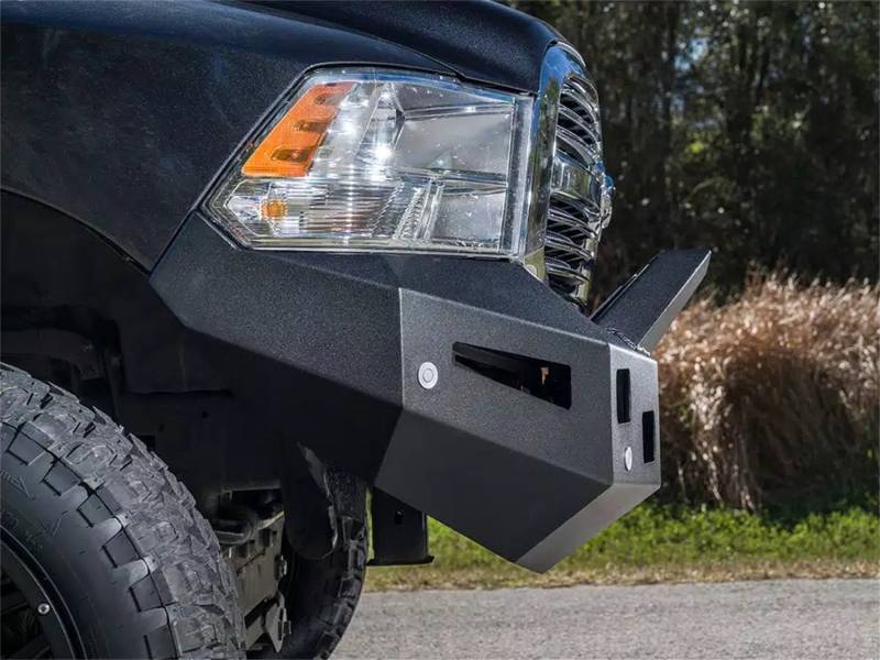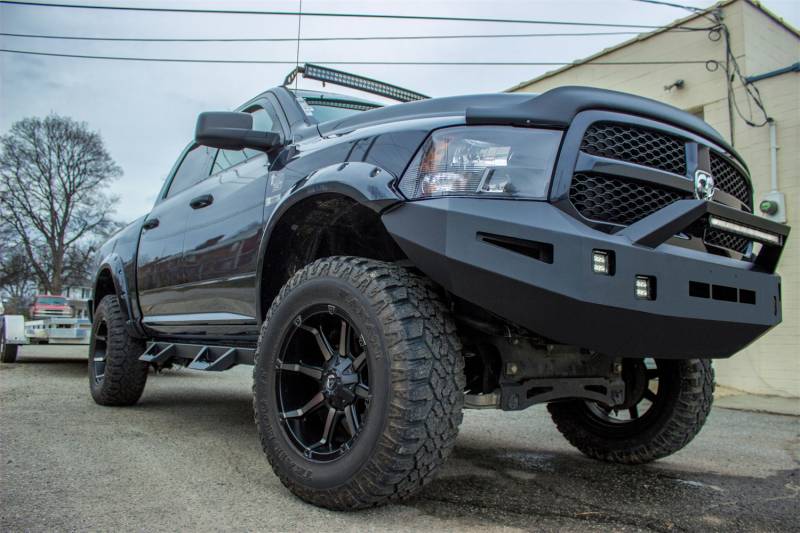 Give your 2013-2018 Dodge Ram 1500 a more aggressive style and added options with this Alumilite bumper. This aluminum bumper can fit four square 3 in. cube LEDs, like the Baja Designs Squadron, and a 20 in. LED light bar, like the Baja Designs S8, fits under the included bolt-on RT light mount. This bumper will accommodate trucks with and without front parking sensors. The unique styling of this truck allows the bumper to wrap completely around the front of the truck to the fenders, whether you have the OE plastic Sport front bumper or chrome bumper and valance, this Alumilite bumper will add style and protection to your Ram.