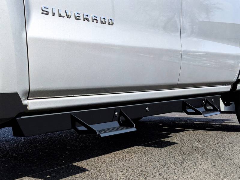 ICI Alumilite side steps are premium product featuring a main side bar and dual removable step hoops made from 3/16in 5052 aluminum, steel bolt-on rocker mount brackets, all triple stage e-coated and light texture powder coated for the most durable and rust-free finish. All hardware comes in a black zinc finish to match the steps. All Alumilite side steps include a limited lifetime structural warranty and a one-year warranty on defects of the powder coat finish. These side steps are designed to fit each application specifically and are not just a universal bar with vehicle specific mounting brackets, giving you the best fitting and cleanest looking step possible. Being made from aluminum they will not rust if you scratch them up on the trail, something no steel step can claim.