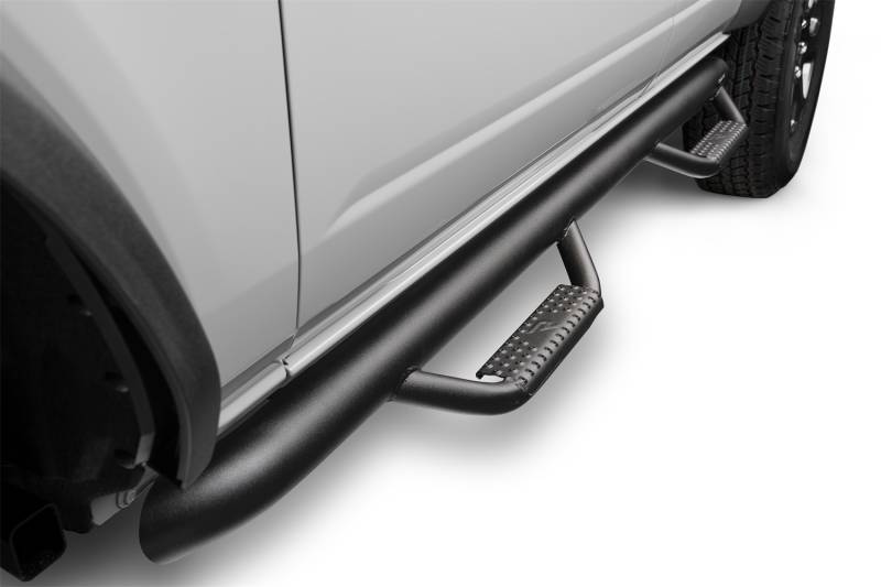 Built with today's work truck in mind, N-FAB offers its patented hoop step design and innovative mounting system in a Cab Length configuration. Designed with classic N-FAB styling, Cab Length Nerf Steps are ideal for flat bed trucks, stake bed trucks, vehicles with campers, and even trucks with side exhaust forward of the rear wheels. Manufactured from .084 wall tubular steel, Cab Length Nerf Steps provide all of the strength and durability for which N-FAB is known. All Nerf Steps have a 5 year Finish and Lifetime Workmanship Warranty.