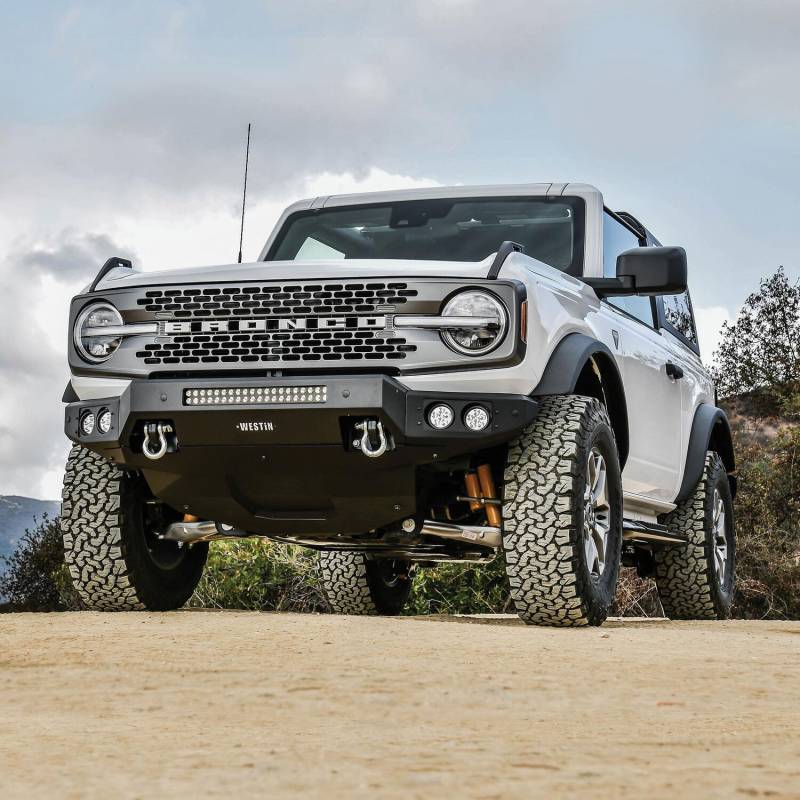 Westins Pro-Mod Front Bumper combines enhanced vehicle protection, with great looks. Pro-Mods revolutionary lightweight modular design is uniquely engineered with outrigger reinforcement brackets to provide maximum front end protection without compromising on strength, integrity or durability. The "high and tight" bumper profile creates a greater approach angle, which significantly improves off-road driving capabilities. The lightweight design also requires smaller shipping packages which dramatically reduces shipping costs. Pro-Mod bumpers feature a textured black finish with an e-coated base coat, providing long lasting corrosion protection from the elements. Once you see the Pro-Mod Front Bumper, the choice becomes obvious.
