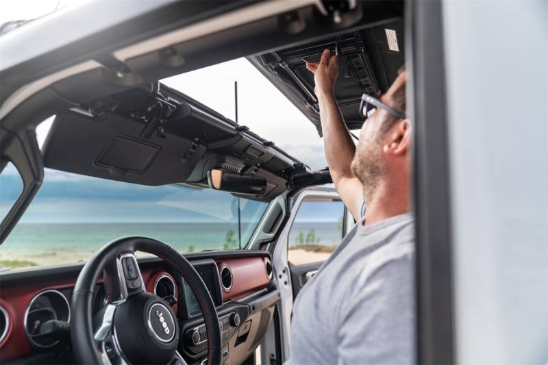 The Rugged Ridge Voyager Soft Top is easily the most stylish and versatile soft top available for Jeep Wrangler JL models. Designed with sleek, fastback styling and packed with all the features you could want in a replacement top. The Voyager's frameless design installs snugly over the factory sport bar for a contoured fit and low profile, with no bulky bows or unsightly bulges. Larger tinted side windows offer greater visibility and are easily removed by means of heavy duty self-correcting zippers. Once removed, the windows store conveniently inside the built-in overhead panel, keeping them safe from damage and ready to install at a moment's notice. Best of all, the Voyager top's fold-back feature affords you open-top enjoyment in just seconds. Constructed of 30 oz. premium sail cloth fabric with sealed seams, the Voyager Soft Top is built to last and backed by an industry-leading 5-year warranty.