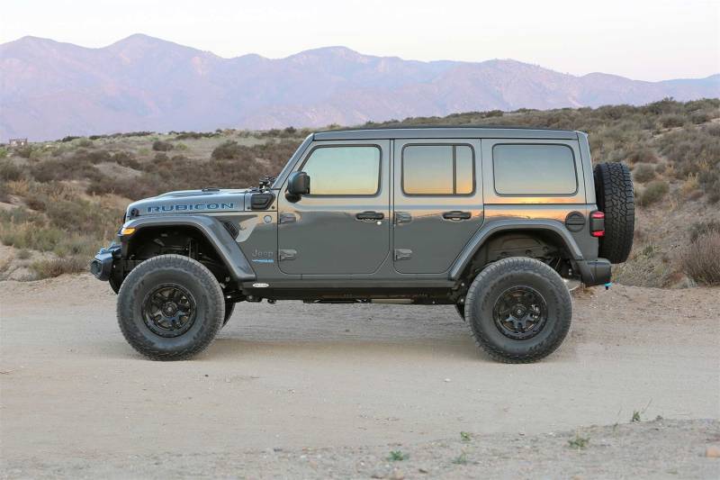 The Sport system features American made coil springs that are a Dual Rate design allowing for long travel suspension use offroad with a smooth highway ride. The first stage of the spring provides a soft ride with the ability to extend for additional travel. The second stage is designed to handle the payload of the vehicle and address large impact absorption at higher speeds. The Dual Rate coil springs are corner specific to the JL. This keeps the vehicle level side to side while allowing for increased suspension travel. Four bump stops extensions utilize the factory bump stops for compliant cushioning at full compression. The extensions retain the stock down travel to eliminate over cycling of the suspension and driveline. The extended length front and rear sway bar links with urethane bushings reposition the bars to work within the factory operating planes. By extending the length of the links, it prevents the sway bar from going over center and creating bind at full extension travel. A heavy duty rear track bar bracket re-centers the axle while retaining the factory roll center of the vehicle with the increased ride height.