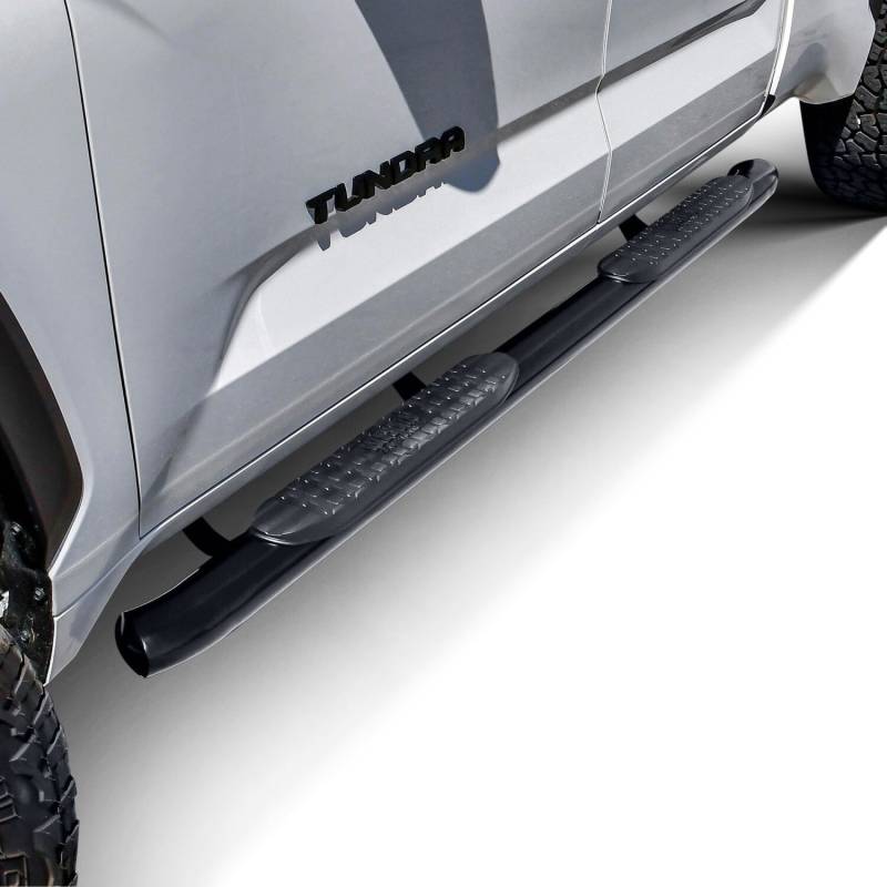 Westins Pro Traxx 4 Oval Nerf Step Bars feature a 4in. oval tube with a heavy-duty step pad that provides a wider and more secure step area. They feature 30 factory style bends that have seamless domed ends so there are no end-caps or exposed bolt heads. Applications are bolt-on installation.