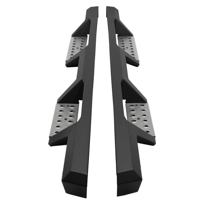Westins HDX Stainless Drop Nerf Step Bars are built with corrosion-resistant, textured black painted stainless steel designed to last under the toughest of conditions. With 1-piece construction, these nerf step bars provide over 2 added inches of toe/heel step area than our competitors and fit tight to the vehicles rocker panel for a solid fit and rugged look. HDX Stainless Drop Nerf Step Bars include stainless steel step pads. Step plates are rust resistant and provide maximum traction. Bolt-on installation with no drilling is required. Includes mount kit.