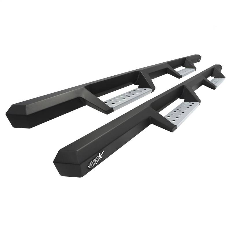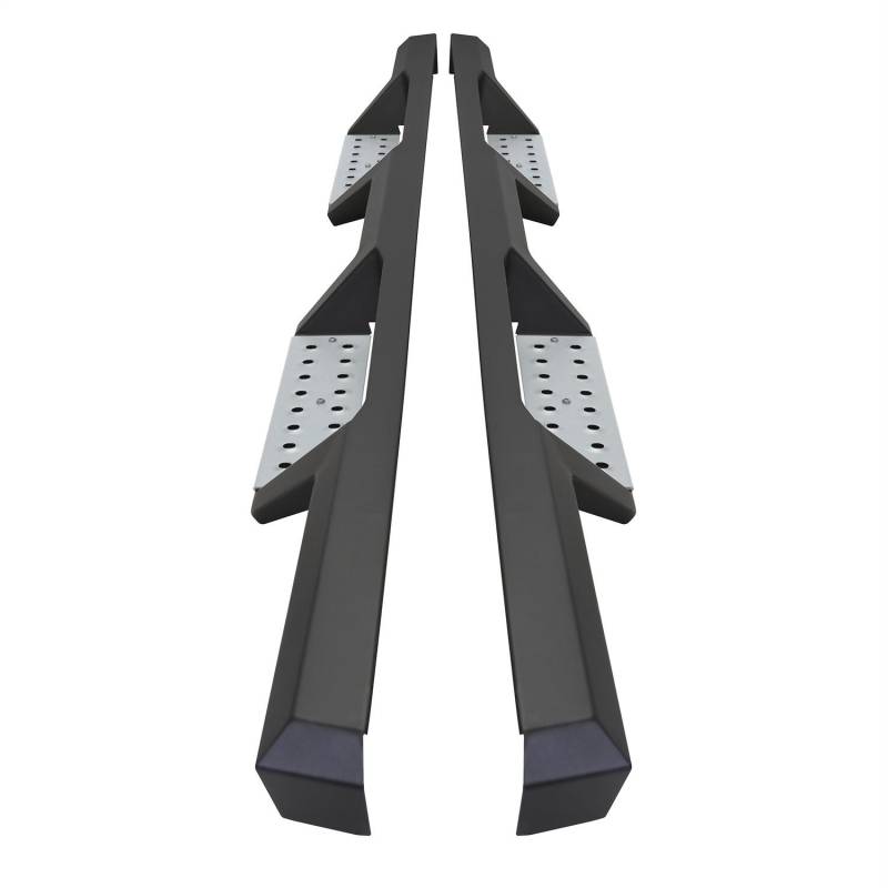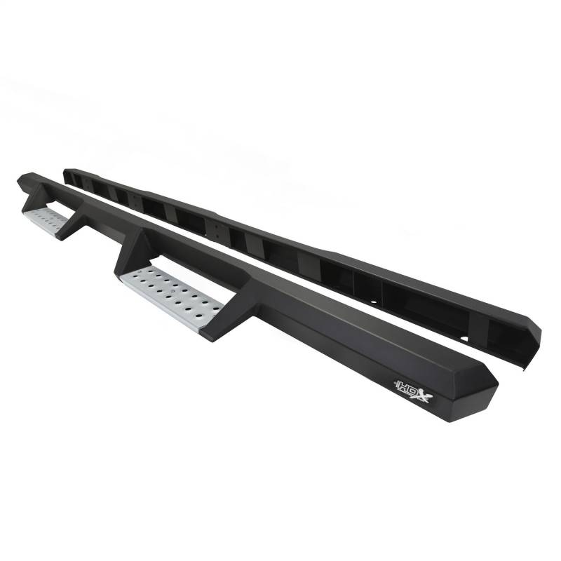 Westins HDX Stainless Drop Nerf Step Bars are built with corrosion-resistant, textured black painted stainless steel designed to last under the toughest of conditions. With 1-piece construction, these nerf step bars provide over 2 added inches of toe/heel step area than our competitors and fit tight to the vehicles rocker panel for a solid fit and rugged look. HDX Stainless Drop Nerf Step Bars include stainless steel step pads. Step plates are rust resistant and provide maximum traction. Bolt-on installation with no drilling is required. Includes mount kit.
