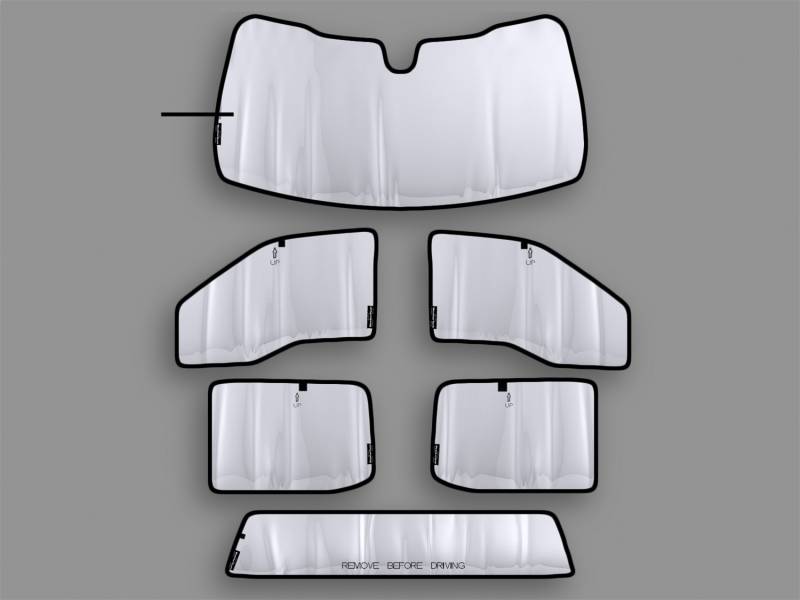 WeatherTech SunShade Full Vehicle Kits help keep your entire vehicle's interior temperatures down while protecting it from the sun's damaging effects. SunShade Full Vehicle Kits include 4 or 6 pieces depending on the vehicle model. SunShade kits are custom-fit, and when properly installed, will remain snug in each window opening on the vehicle. Each SunShade features a foam core, which makes for easy handling and a sturdy fit. After use, simply pull on the your shade's pull tabs and roll all pieces together using the easy roll up and store Hook & Loop strap. Full Vehicle Kits only available in select vehicles