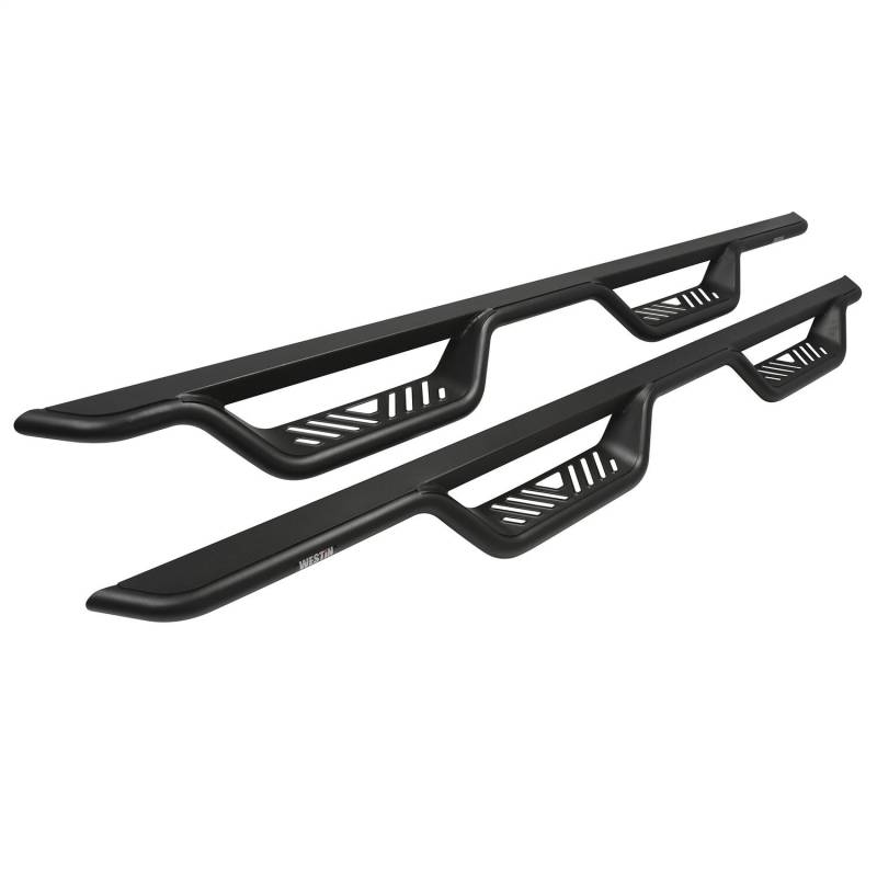 If you want a unique upgrade that makes accessing your truck, Jeep or SUV easier, Westin's Outlaw Drop Nerf Step Bars are the finishing touch you need. Crafted from mandrel bent 1.5' diameter steel tube and paired with a welded cab length top plate, these step bars are more than just an eye-catching accessory. The distinctive 4' drop step features a die-stamped step plate that makes it easy to knock the mud, dirt, and debris from your feet before you step into the cabin. Worried about compatibility' We've got you covered. From GM, Ram, and Toyota to Ford Trucks and even the newer 2 and 4 door Broncos, the Outlaw Drop Nerf Step Bars are designed to be a seamless fit. You can learn all about the benefits of adding nerf bars to your rig here. Durability' Check. Aided by an electrostatic base coat, these bars are resistant to corrosion. They're finished with corrosion-resistant textured powder-coat (even in the stainless finish option) and feature a die-stamped stainless steel step area which makes them ruggedly appealing and able to withstand the elements. No tedious installations here ' the Outlaw Drop Nerf Step Bars install with a bolt-on installation process that doesn't require any drilling. Plus, all the necessary hardware and mounting brackets are included in the package. These step bars are backed by the confidence of Westin's full 3-year warranty. If you're in the market for a practical and stylish nerf step with a blend of premium features, these side steps might just be your next buy. Contact us if you have any questions - we're happy to help.