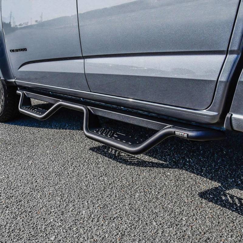 If you want a unique upgrade that makes accessing your truck, Jeep or SUV easier, Westin's Outlaw Drop Nerf Step Bars are the finishing touch you need. Crafted from mandrel bent 1.5' diameter steel tube and paired with a welded cab length top plate, these step bars are more than just an eye-catching accessory. The distinctive 4' drop step features a die-stamped step plate that makes it easy to knock the mud, dirt, and debris from your feet before you step into the cabin. Worried about compatibility' We've got you covered. From GM, Ram, and Toyota to Ford Trucks and even the newer 2 and 4 door Broncos, the Outlaw Drop Nerf Step Bars are designed to be a seamless fit. You can learn all about the benefits of adding nerf bars to your rig here. Durability' Check. Aided by an electrostatic base coat, these bars are resistant to corrosion. They're finished with corrosion-resistant textured powder-coat (even in the stainless finish option) and feature a die-stamped stainless steel step area which makes them ruggedly appealing and able to withstand the elements. No tedious installations here ' the Outlaw Drop Nerf Step Bars install with a bolt-on installation process that doesn't require any drilling. Plus, all the necessary hardware and mounting brackets are included in the package. These step bars are backed by the confidence of Westin's full 3-year warranty. If you're in the market for a practical and stylish nerf step with a blend of premium features, these side steps might just be your next buy. Contact us if you have any questions - we're happy to help.