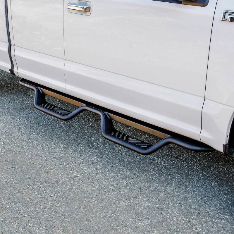 If you want a unique upgrade that makes accessing your truck, Jeep or SUV easier, Westin's Outlaw Drop Nerf Step Bars are the finishing touch you need. Crafted from mandrel bent 1.5' diameter steel tube and paired with a welded cab length top plate, these step bars are more than just an eye-catching accessory. The distinctive 4' drop step features a die-stamped step plate that makes it easy to knock the mud, dirt, and debris from your feet before you step into the cabin. Worried about compatibility' We've got you covered. From GM, Ram, and Toyota to Ford Trucks and even the newer 2 and 4 door Broncos, the Outlaw Drop Nerf Step Bars are designed to be a seamless fit. You can learn all about the benefits of adding nerf bars to your rig here. Durability' Check. Aided by an electrostatic base coat, these bars are resistant to corrosion. They're finished with corrosion-resistant textured powder-coat (even in the stainless finish option) and feature a die-stamped stainless steel step area which makes them ruggedly appealing and able to withstand the elements. No tedious installations here ' the Outlaw Drop Nerf Step Bars install with a bolt-on installation process that doesn't require any drilling. Plus, all the necessary hardware and mounting brackets are included in the package. These step bars are backed by the confidence of Westin's full 3-year warranty. If you're in the market for a practical and stylish nerf step with a blend of premium features, these side steps might just be your next buy. Contact us if you have any questions - we're happy to help.