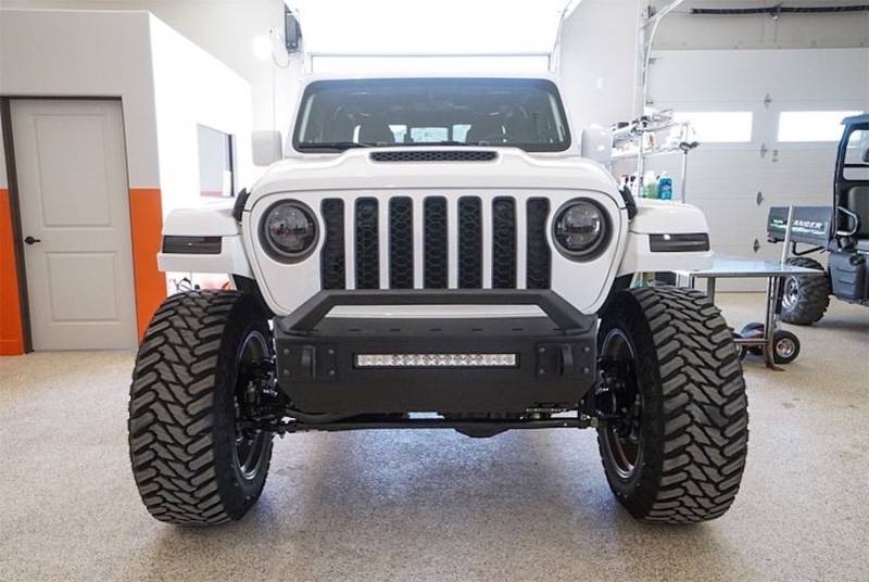 The lightest bumper for a Jeep Wrangler Maybe we havent investigated it, but our Alumilite bumper is ultralight! This is a minimalistic all aluminum stubby bumper that will fit 07-current Jeep Wranglers yes it fits JK and JLs as well as Gladiators. This bumper will not hold a winch and there is no winch carrier add on for it. Also, it will not fit your factory fog lights that's why we include the 20 LED light bar in the center. In addition it includes our bolt-on RT light mount which can accommodate up to another 20 in. light bar. If you need to mount more accessories, we added some slotted holes to the top for you to bolt-on whatever you desire. Just in case you need to be pulled out of somewhere there are two 1 in. steel shackle mounts bolted directly to the front bumper and through the frame providing a convenient and safe place to pull from.