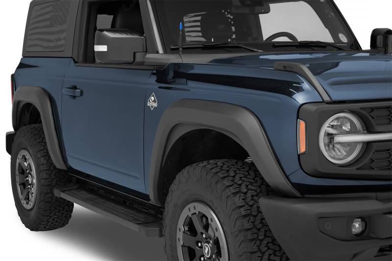 Give your Bronco's look a retro-modern upgrade with our Fender Flares. Inspired by the 1966 Ford Bronco, our Fender Flares evoke the legacy of this American classic on your 2021-2022 Bronco. These flares offer a subtly retro look, and are made with UV-stable thermoformed material that is both flexible and shatter-proof. The included stainless steel hardware keeps corrosion at bay. Our Ford Bronco Fender Flares complement the vehicle from every angle, an unmistakable upgrade that makes your Bronco stand apart. Available for 2-door and 4-door models.