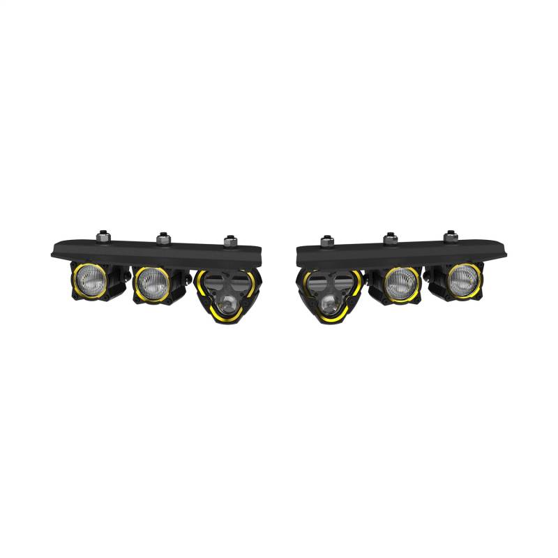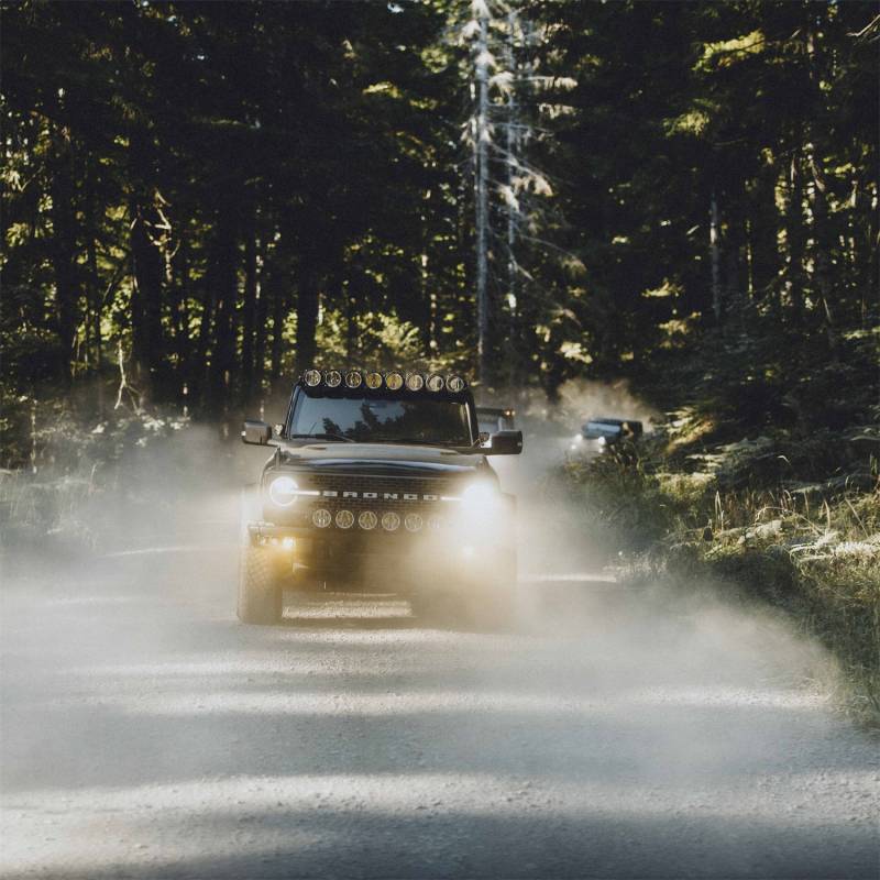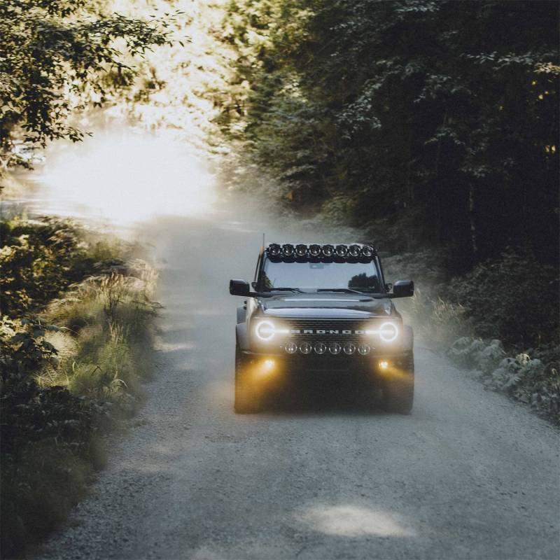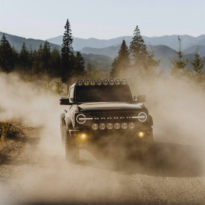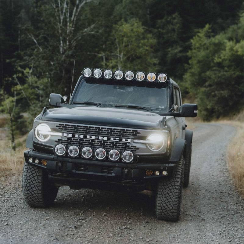 The Ford Bronco Fog Pocket Light Kit from KC features an array of street-legal fog lights for the pavement and high-power off-road lighting to use while tackling the trails. The kit includes everything needed, from mounting brackets to wiring harnesses, changeable beam pattern lenses, and more. With the included harnesses, you can switch between street-legal fog lights and offroad lights with ease using your factory-equipped Upfitter switches.