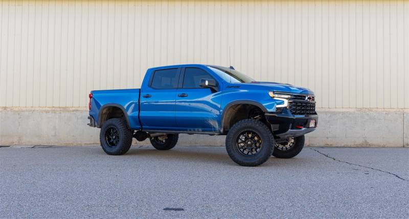 Lifted truck customers are inthe market for trucks that can handle tough terrain. Look no further than ReadyLIFT's new Leveling and Big Lift Kits engineered exclusively for the 2022-2023 Chevy Silverado 1500 ZR2 and GMC Sierra 1500 AT4X trucks. These two top-of-the-line kits provide an impressive lift, allowing for greater clearance and enhanced off-roading capabilities. But what sets ReadyLIFT apart from the competition? It's our relentless focus on ride quality combined with our strict adherence to quality standards and dedication to customer satisfaction. With ReadyLIFT, you don't just get a lift kit, you get peace of mindthat your vehicle will excite and delight your senses (just don't taste it). Leveraging oneof our top-selling application designs for the AT4 and TrailBoss 1500 trucks, our engineers adapted the quality and features into the all-new AT4X and ZR2. Forget squeaks, rattles, and vibrations; these lift kits ensure superior performance with smooth rides over all terrain. Designed to provide more ground clearance and increased flexibility on the street or trail, the big liftkits utilize boxed steel front/rear cross members and a full-width front skid plate constructed of thick 3/16 in. plate steel. New 1/4-inch boxed plate steel differential drop brackets feature a double gusset and boxed center rib to take the abuse of front differential torsional twisting on the big kits. The leveling kit provides the required amount of level lift without causing compromises to the factory strut geometry and clearances with our new interlocking pre-load spacer for ease of installation. Considering the factory upper control arm's limited dynamic range when the AT4X/ZR2 truck is further lifted, this leveling kit includes our popular tubular upper control arms with corrected ball joint cup angles, heavy-duty replaceable ball joints, and our new Terrain Control Technology (TCT) maintenance-free pivot bushings with side-biter washersto improve alignment retention.