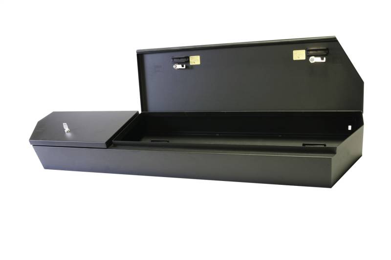 This high security welded steel security lockbox mounts under the rear seat in your 2007-2021 Toyota Tundra (Standard Crew Cab). Unfortunately, this DOES NOT fit the CrewMax (Extended Crew Cab). The full width formfitting design of the Tuffy lockbox has over 3200 cubic inches of lockable storage. Its secured contents are easily accessed by flipping either or both rear seat(s) up and opening the corresponding lid(s). The unique design allows the full width to be used to stow firearms or other long items. Featuring Tuffy's Pry-Guard Locking System with three-digit combination security locks with built in weather seals. Chamfered corners are incorporated into the design making it easier to operate the seat releases as well as aiding passenger ingress and egress. The innovative mounting system is only accessed from inside the box. When additional floor space is needed the entire lockbox can be removed in seconds without the need for any tools.