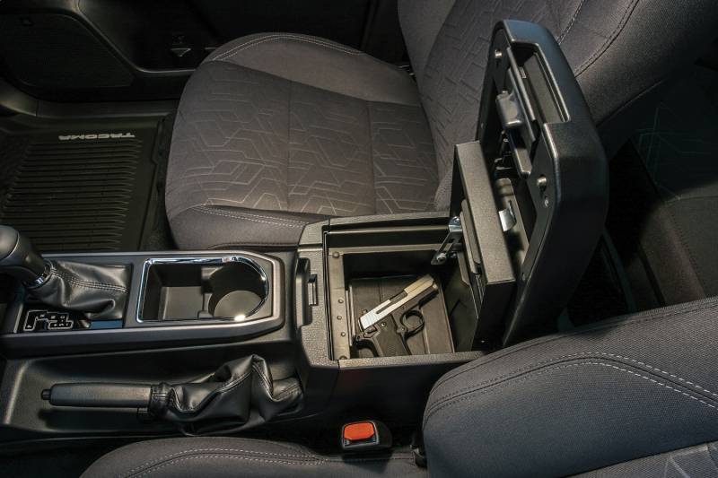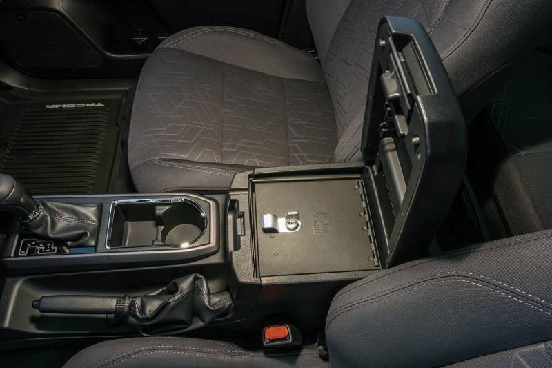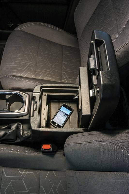 Continuing the Tuffy legacy of designing and manufacturing the finest security console safes in the industry since 1997, Tuffy is proud to introduce our security console safe for the Toyota Tacoma with a fixed center console. This 16 gauge steel console safe provides style, security and convenience. While maintaining the refined curves of the OEM console, the Tuffy console safe transforms your OEM console into a heavy-duty lockable storage area utilizing Tuffy's Pry-Guard locking system with 10 tumbler double bitted security key to help protect valuables from thieves. The innovative design utilizes an exclusive lid support feature that keeps the lid open while accessing contents. The safe maintains a completely stock look including full use of armrest and lid. Featuring a durable texture powder coat finish, the safe comes ready to install in just a few minutes without drilling.